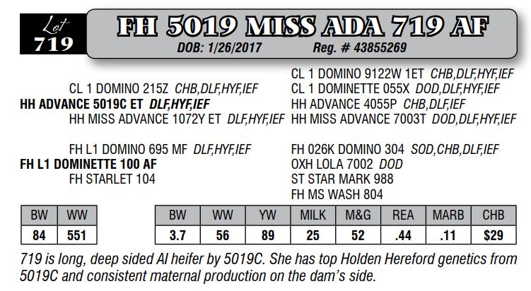 Lot #719 - FH 5019 MISS ADA 719 AF