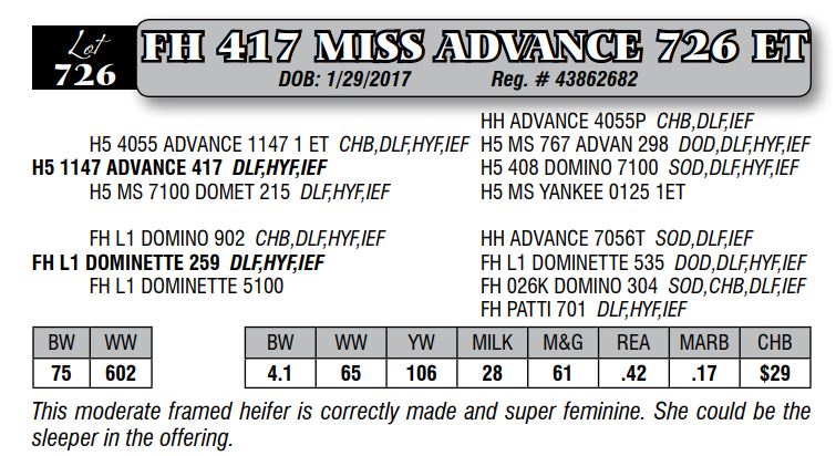 Lot #726 - FH 417 MISS ADVANCE 726 ET