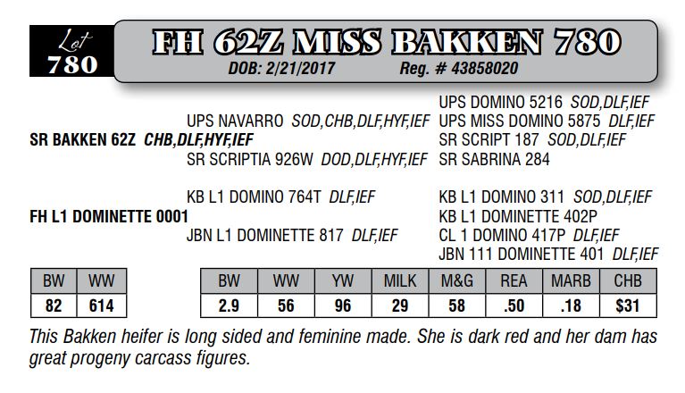 Lot #780 - FH 62Z MISS BAKKEN 780