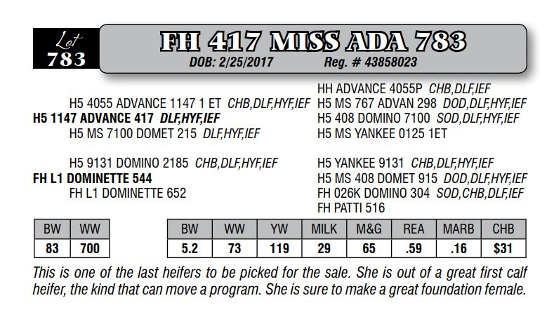 Lot #792 - OUT!  FH 417 MISS ADA 792 MD