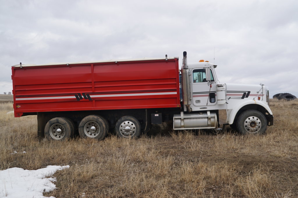 2000 Freightliner w/C-12 Cat Engine, Tri Axle, 20� box w/roll tarp, shows 736,400 miles, 9spd.