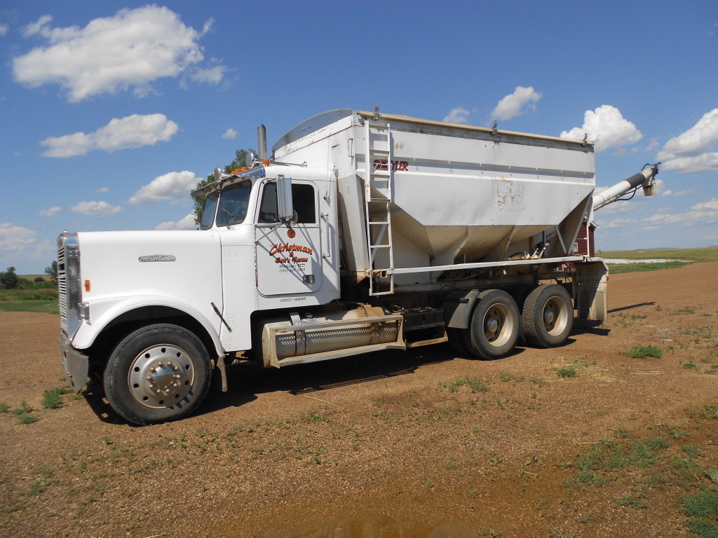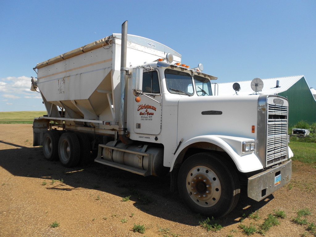1988 Freightliner FLCCON, 350 Cummins 13spd, (vin# 1FUPYCYB9JP323849) w/ Tyler 2 Compartment 250 Bu. Tanks w/ Auger- has new Stelter Built Extension �Auger has New Flighting & New Orbit Motor