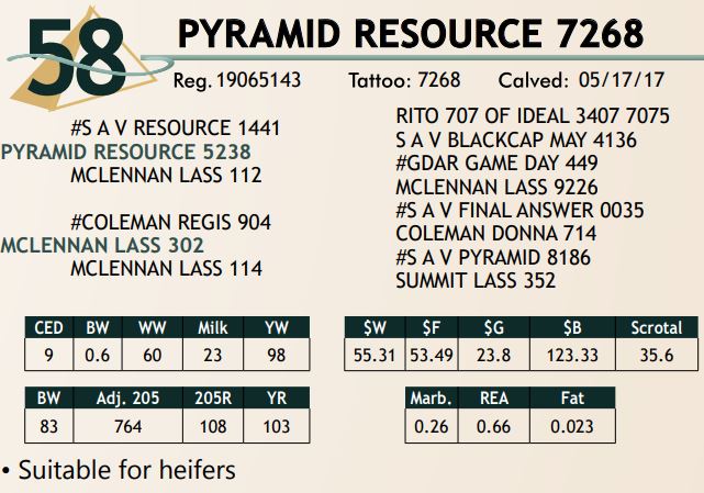 Lot #58 - PYRAMID RESOURCE 7268