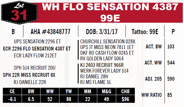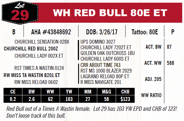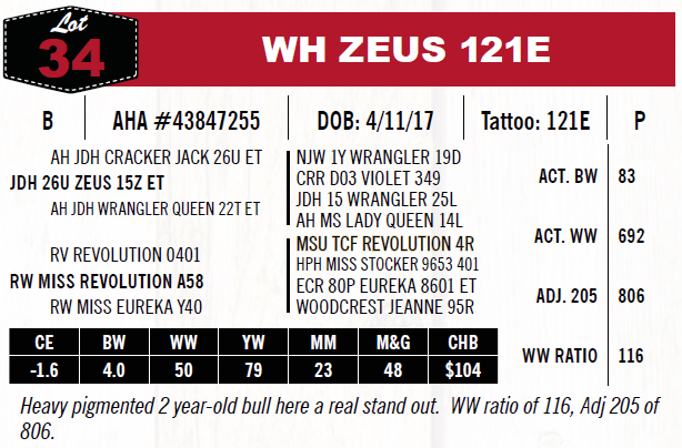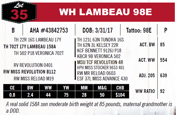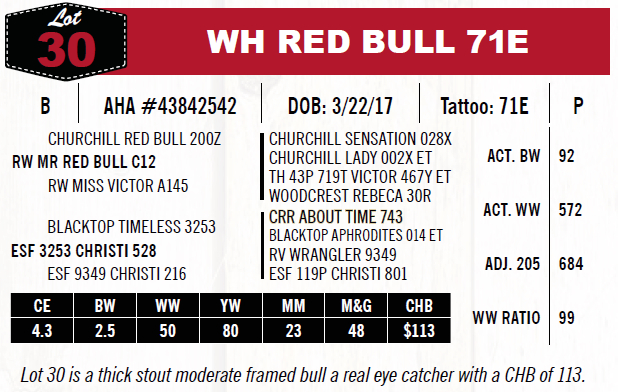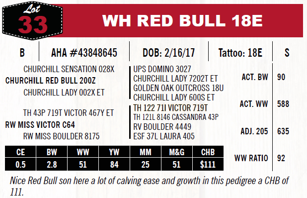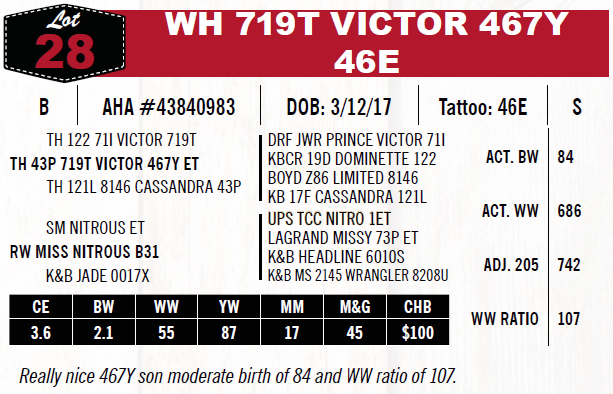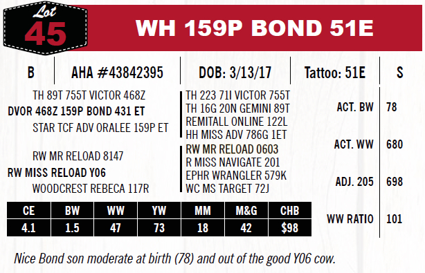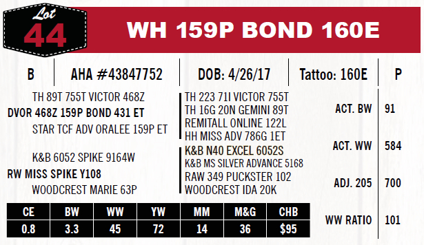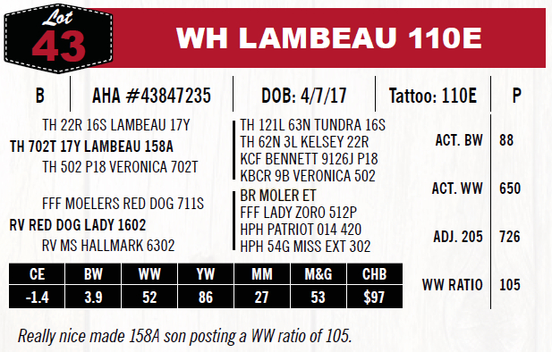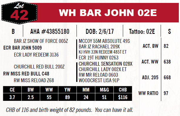Wagner Herefords Online Sale and Open House Lot 14 Corrections - Adjusted 205: 774 - Weaning Weight Ratio: 120