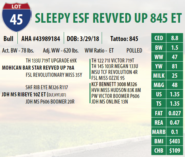 Lot #45 - SLEEPY ESF REVVED UP 845 ET