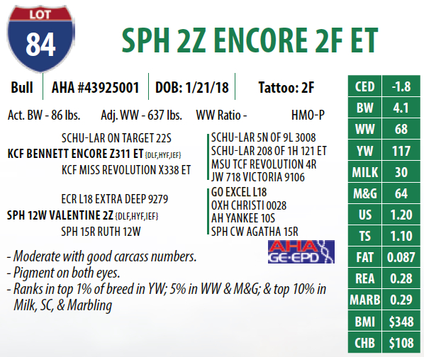Lot #84 - SPH 2Z ENCORE 2F ET