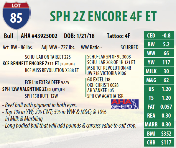 Lot #85 - SPH 2Z ENCORE 4F ET