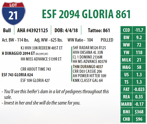Lot #21 - ESF 2094 GLORIA 861
