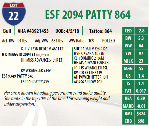 Lot #22 - ESF 2094 PATTY 864