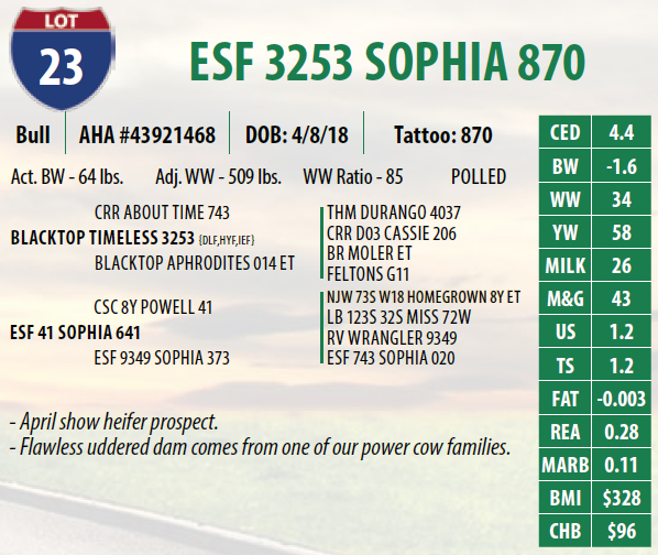 Lot #23 - ESF 3253 SOPHIA 870