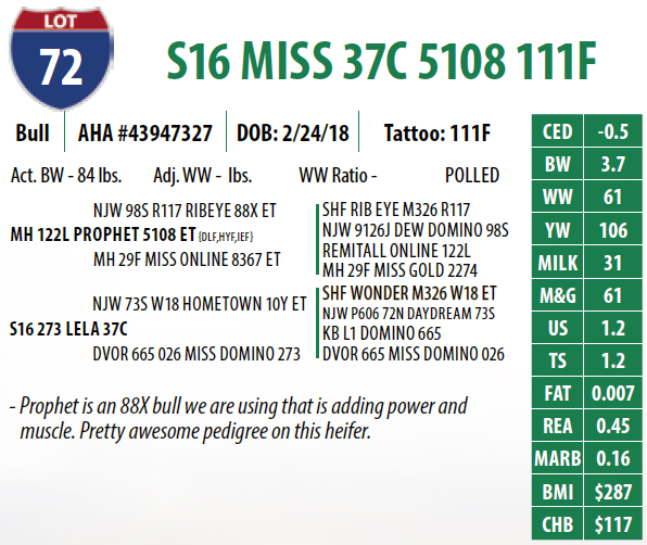Lot #72 - S16 MISS 37C 5108 111F