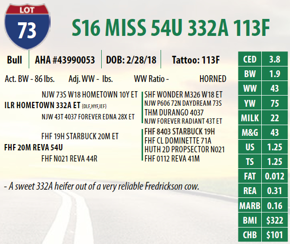 Lot #73 - S16 MISS 54U 332A 113F