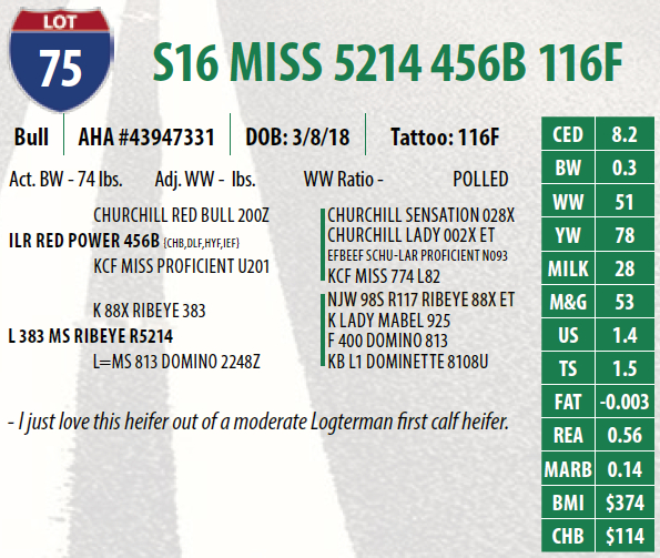 Lot #75 - S16 MISS 5214 456B 116F