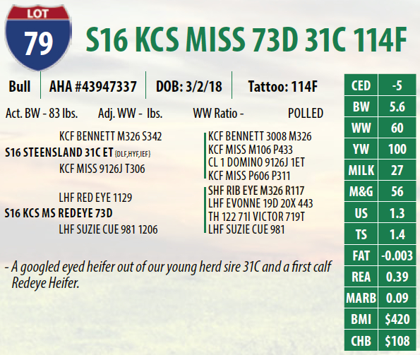 Lot #79 - S16 KCS MISS 73D 31C 114F