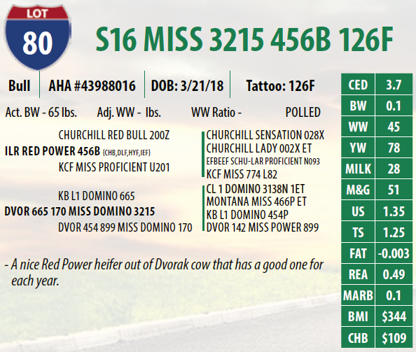 Lot #80 - S16 MISS 3215 456B 126F