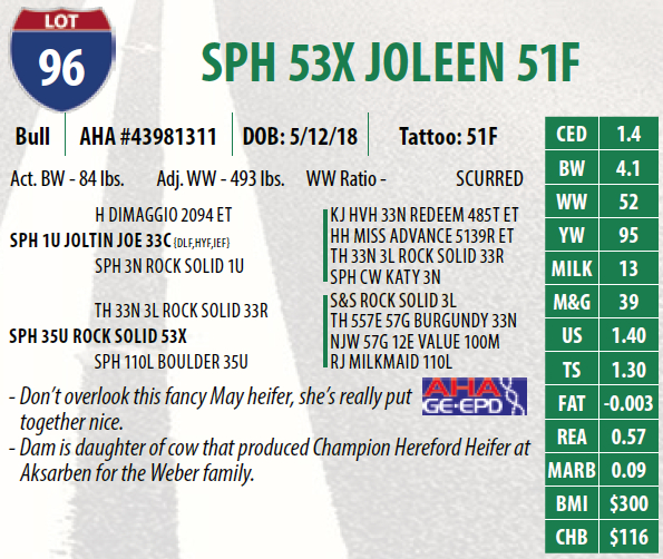 Lot #96 - SPH 53X JOLEEN 51F
