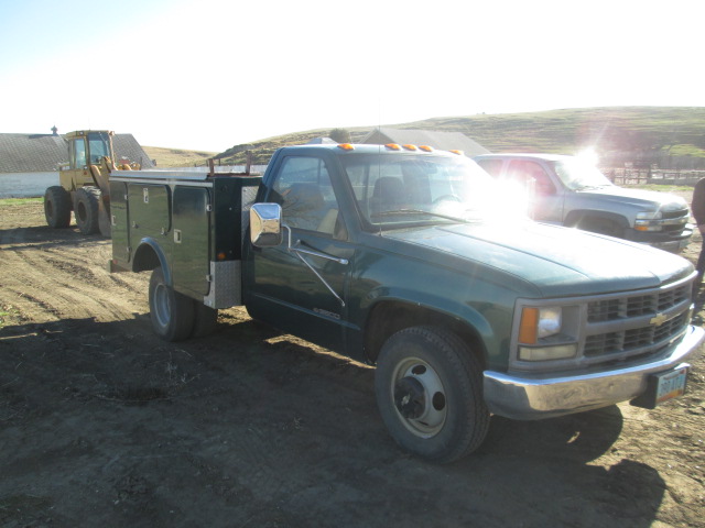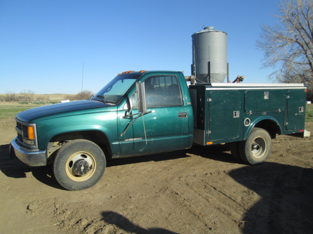 95 Chevy Cheyenne 3500-2X4, auto, w/service box, 300 gal tank, 100,743 mi