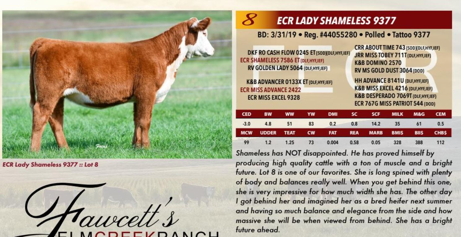 Fawcett's Elm Creek Ranch Annual Female Sale