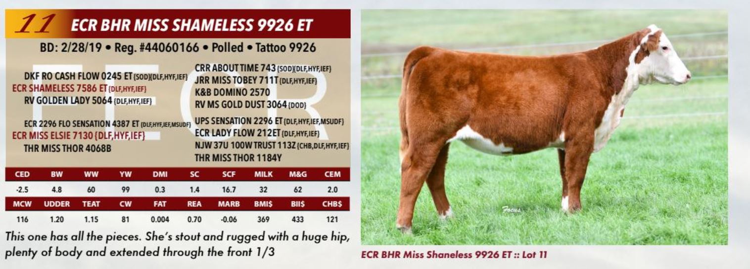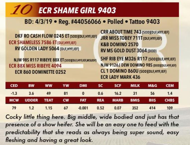 ECR SHAMELESS 7586 ET SEMEN, 3 MIL, SEXED HEIFER
