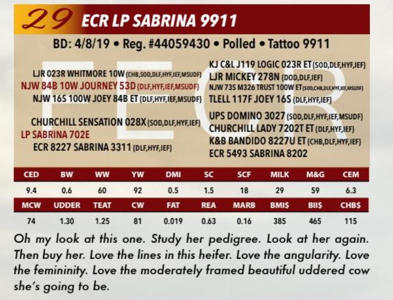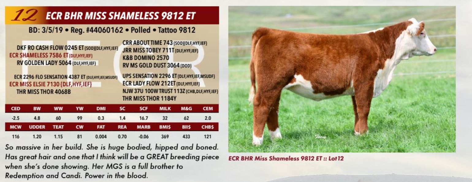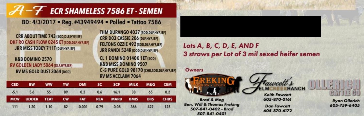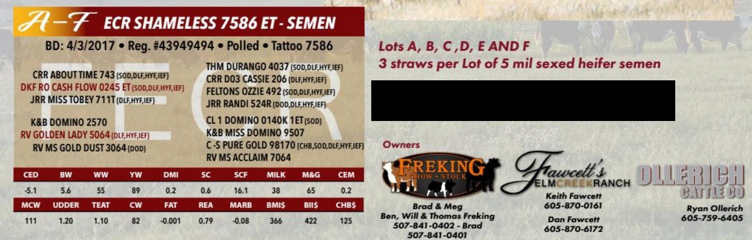 ECR SHAMELESS 7586 ET SEMEN, 5 MIL, SEXED HEIFER