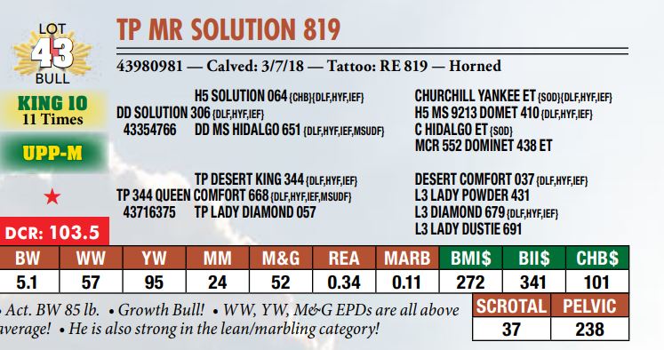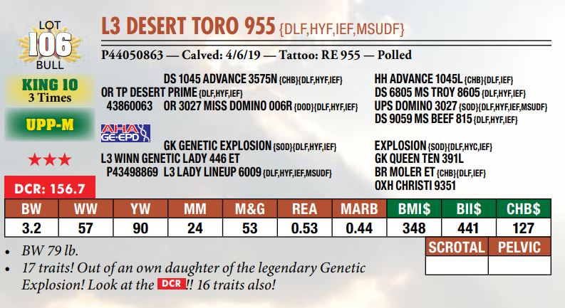 Selling a prime set of Hereford bulls including: 92 Coming Two-Year-Old Bulls 11 Fall Yearling Bulls 5 Outstanding Bull Calves BY OR TP DESERT PRIME