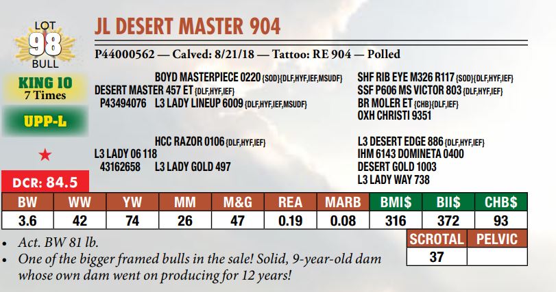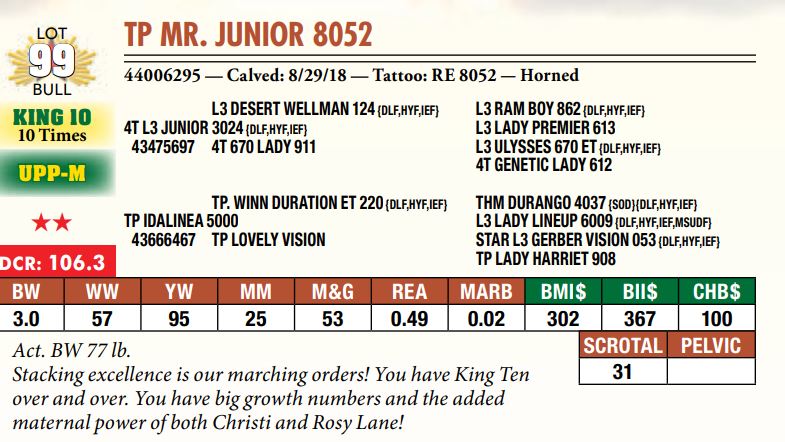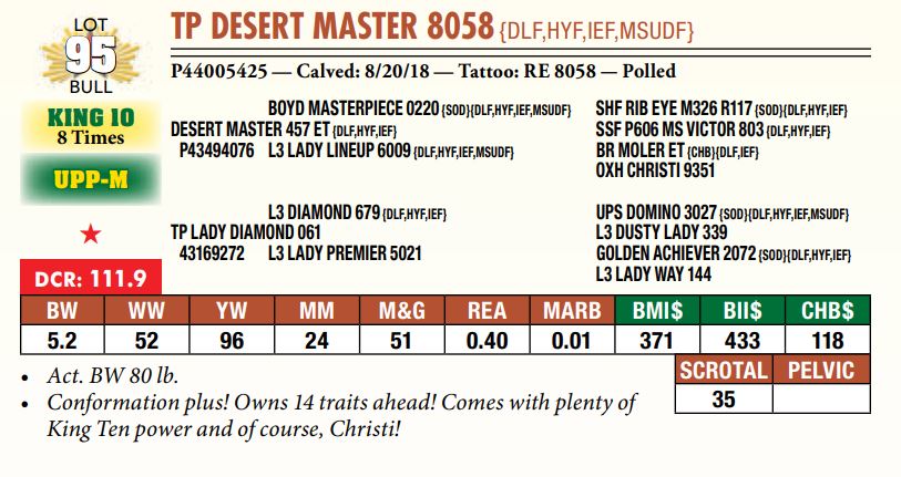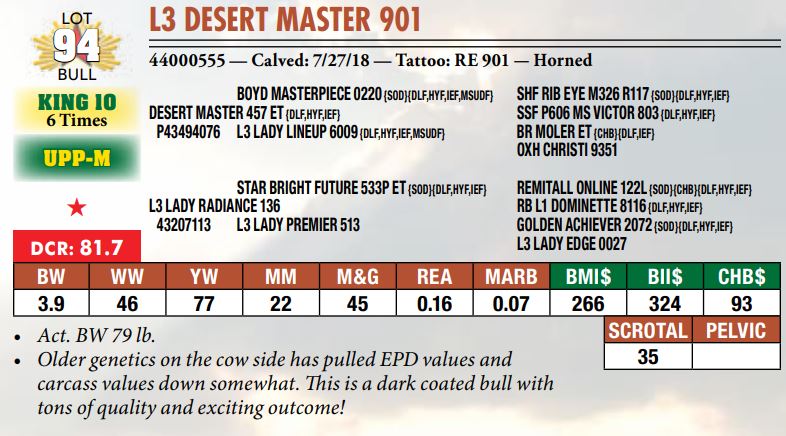 Selling a prime set of Hereford bulls including: 92 Coming Two-Year-Old Bulls 11 Fall Yearling Bulls 5 Outstanding Bull Calves BY OR TP DESERT PRIME