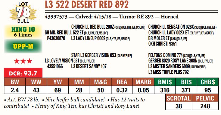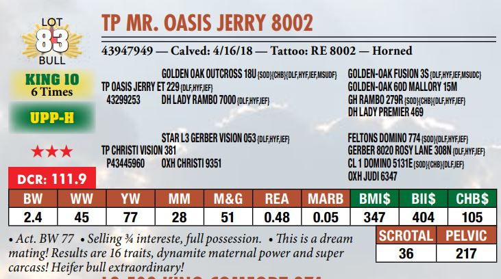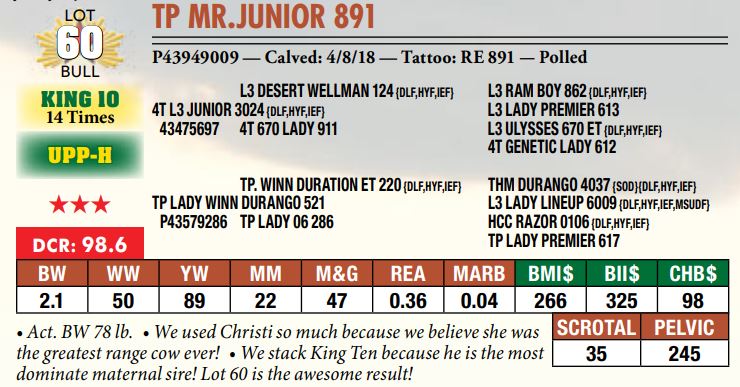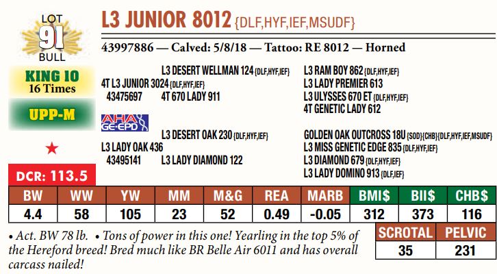Selling a prime set of Hereford bulls including: 92 Coming Two-Year-Old Bulls 11 Fall Yearling Bulls 5 Outstanding Bull Calves BY OR TP DESERT PRIME