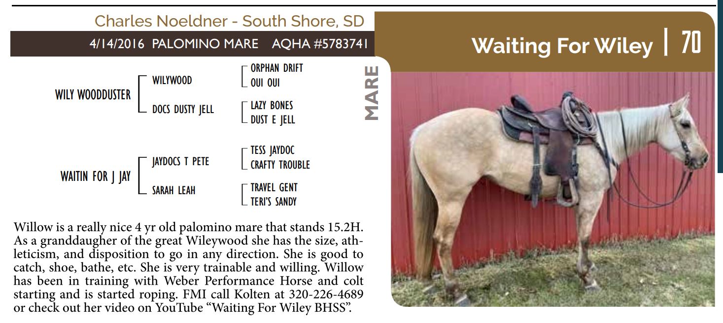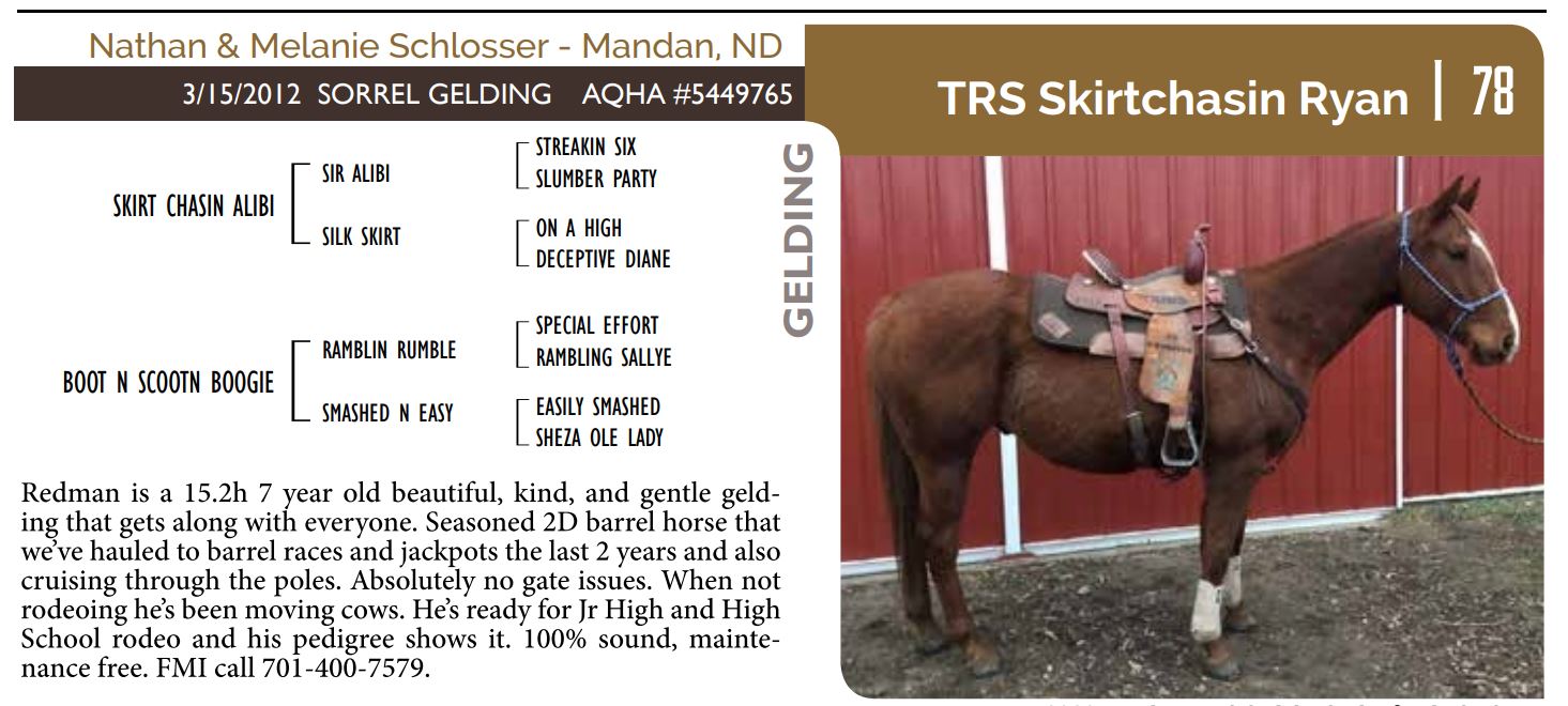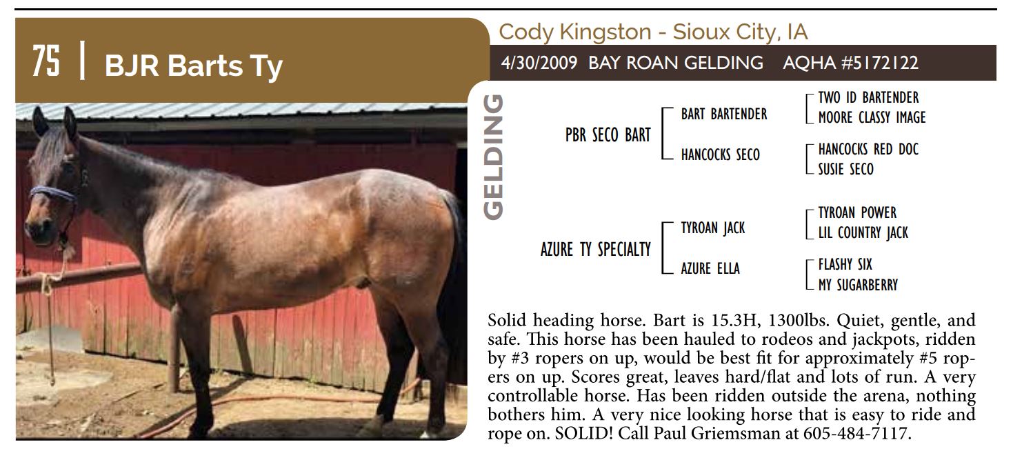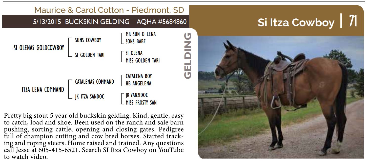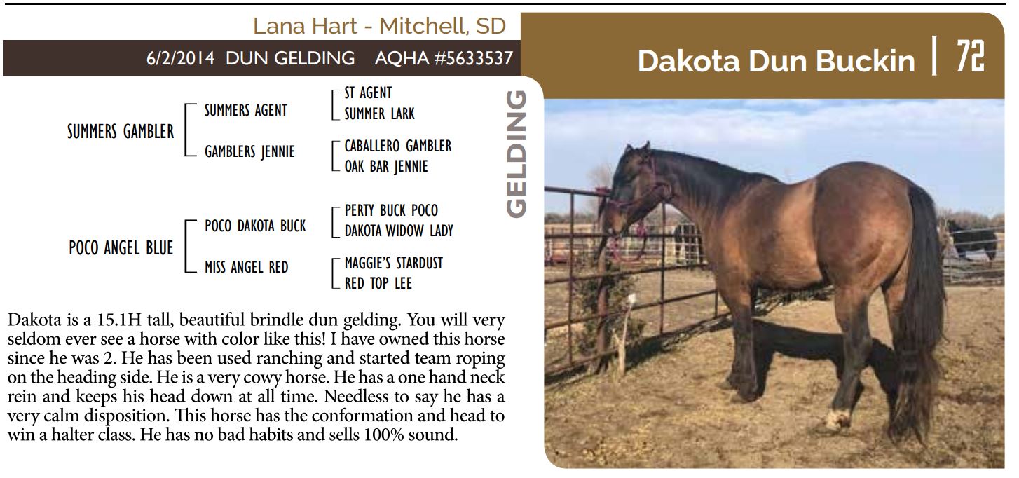 The Friday offering of the Black Hills Stock Show and Rodeo Truck Defender Horse Consignment Sale.