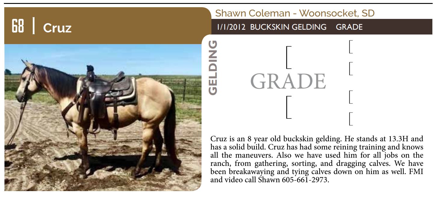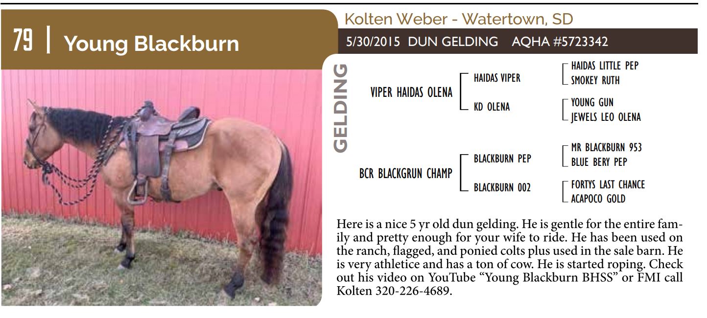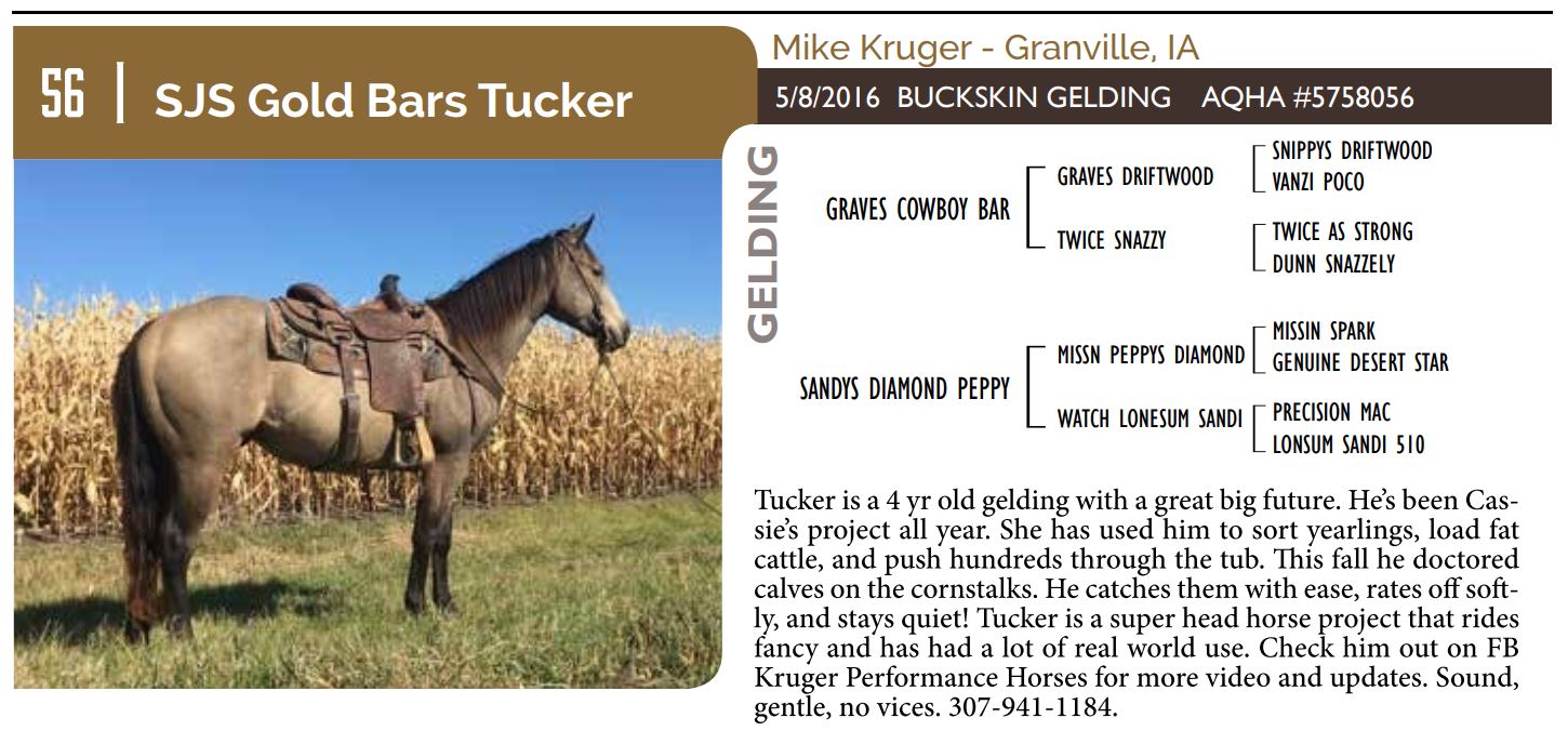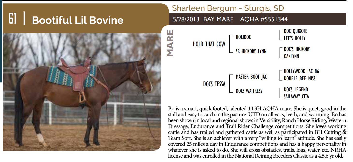 The Friday offering of the Black Hills Stock Show and Rodeo Truck Defender Horse Consignment Sale.