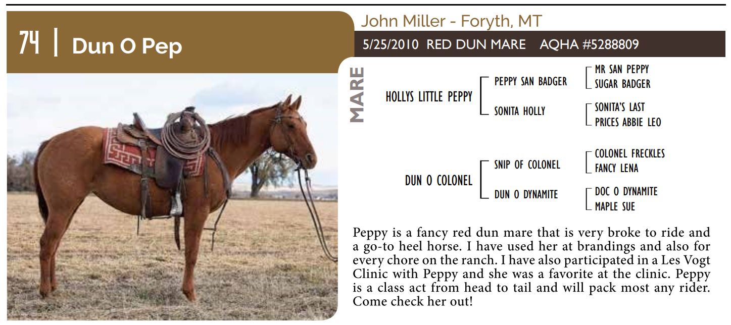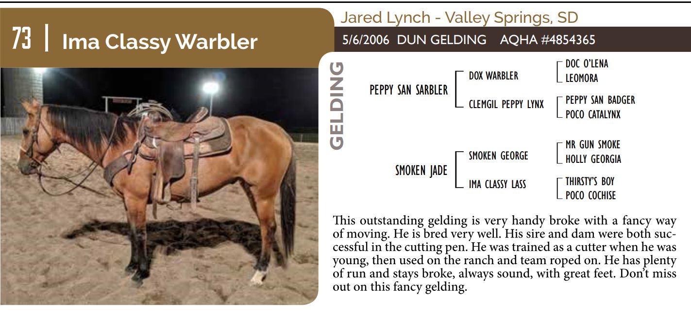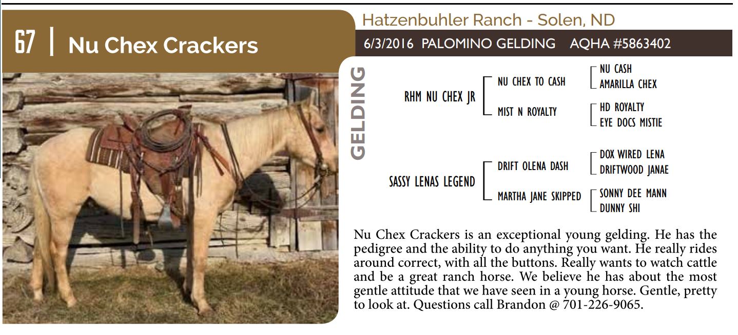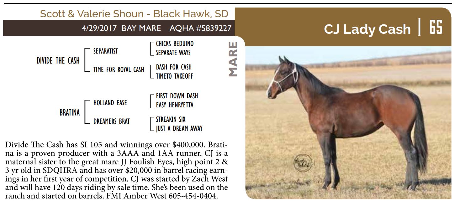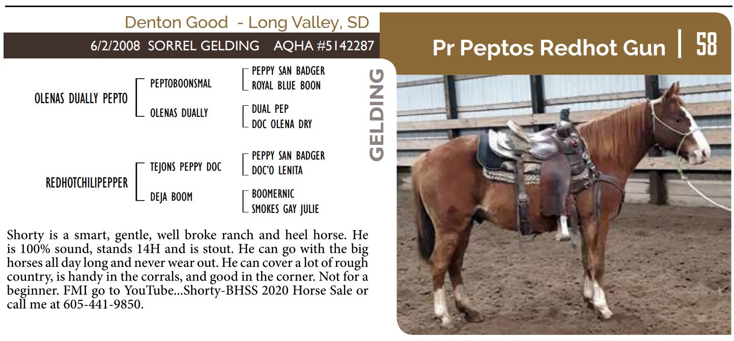 The Friday offering of the Black Hills Stock Show and Rodeo Truck Defender Horse Consignment Sale.
