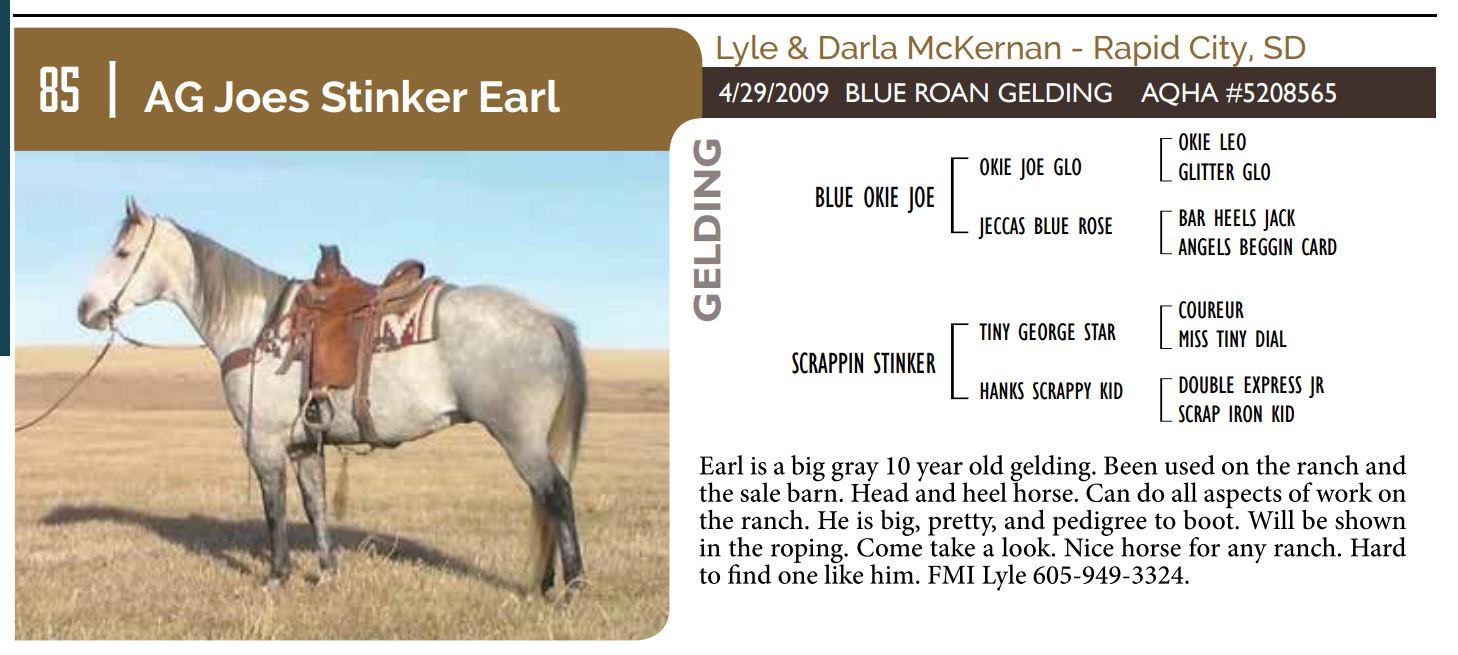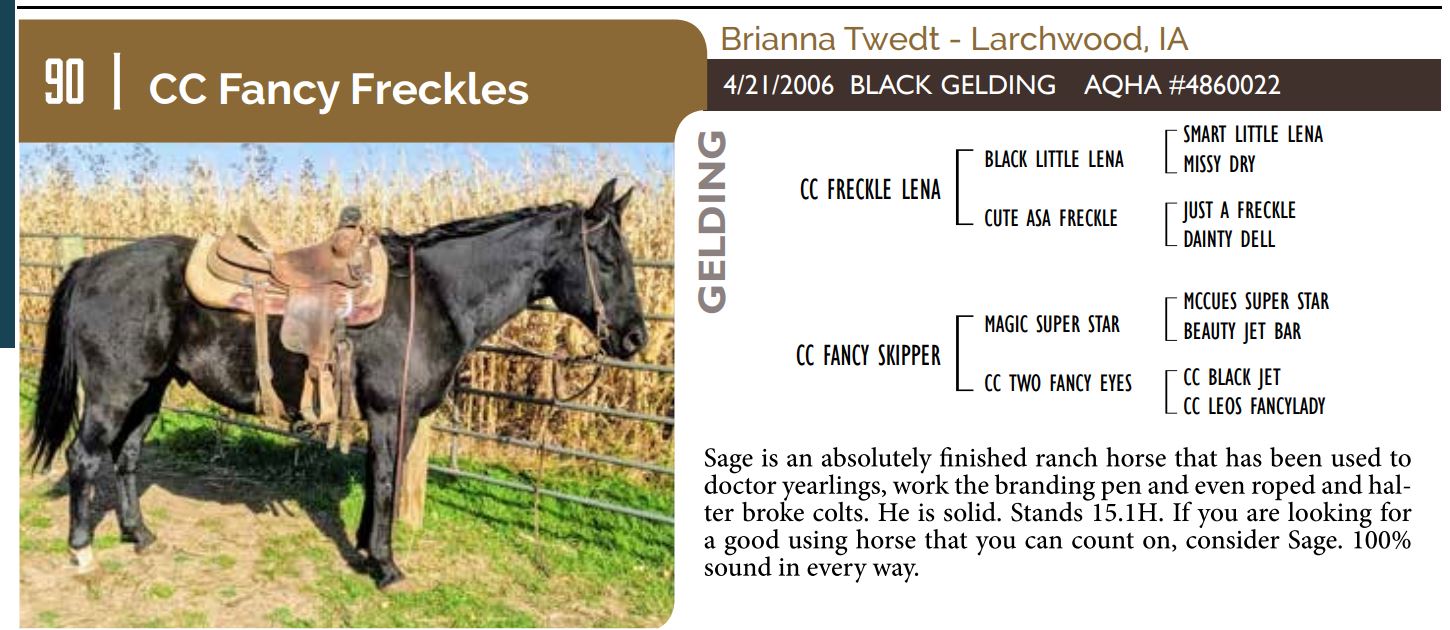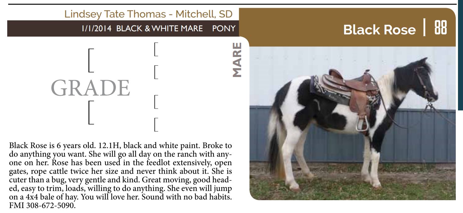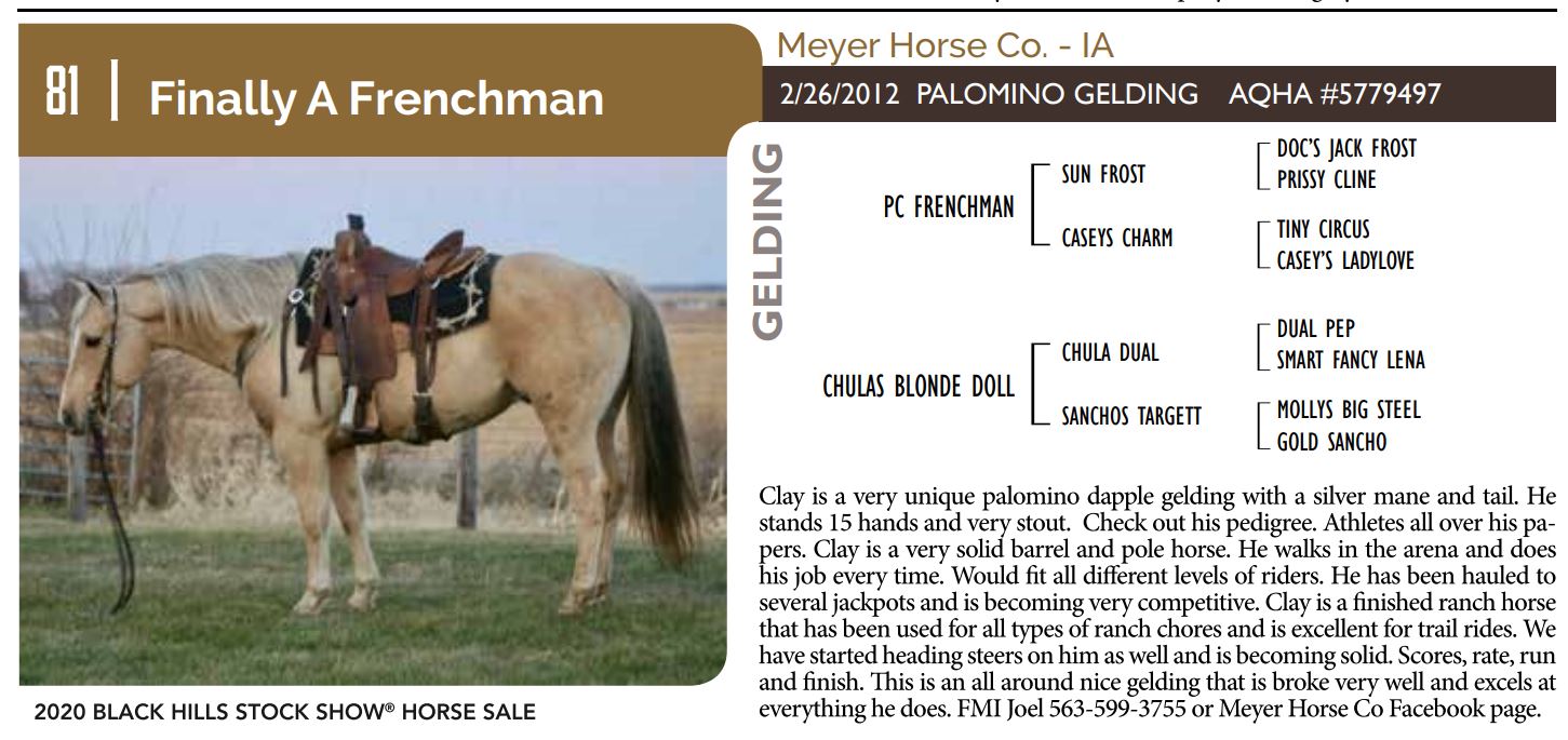 The Friday offering of the Black Hills Stock Show and Rodeo Truck Defender Horse Consignment Sale.