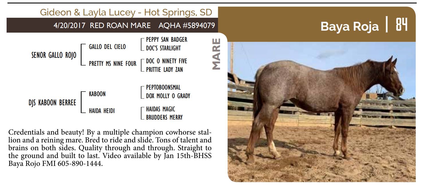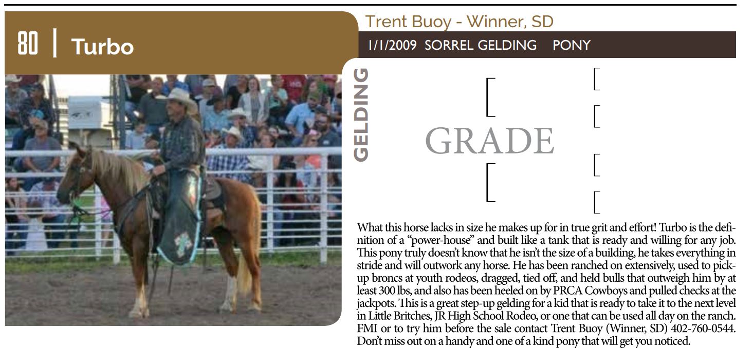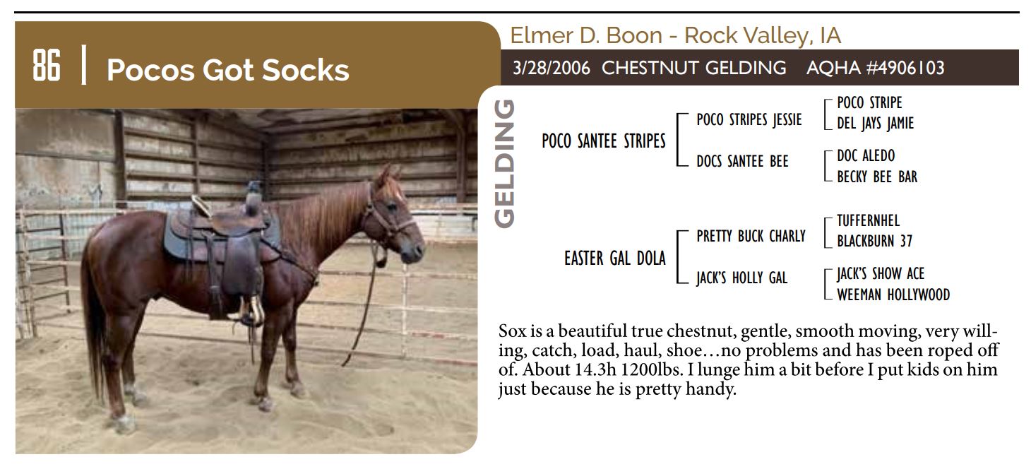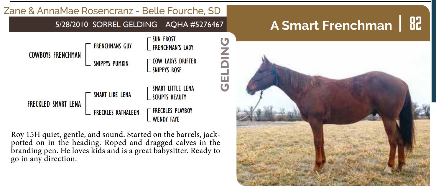The Friday offering of the Black Hills Stock Show and Rodeo Truck Defender Horse Consignment Sale.