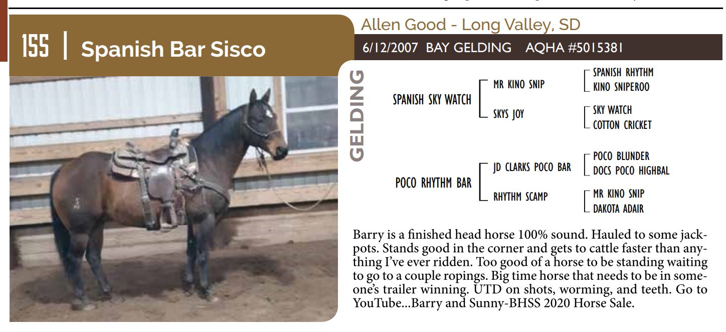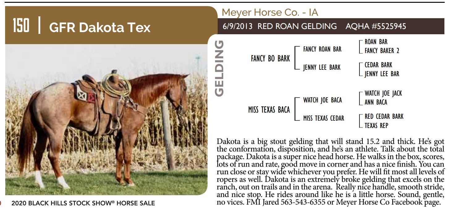 2020 Black Hills Stock Show Truck Defender Horse Sale SATURDAY