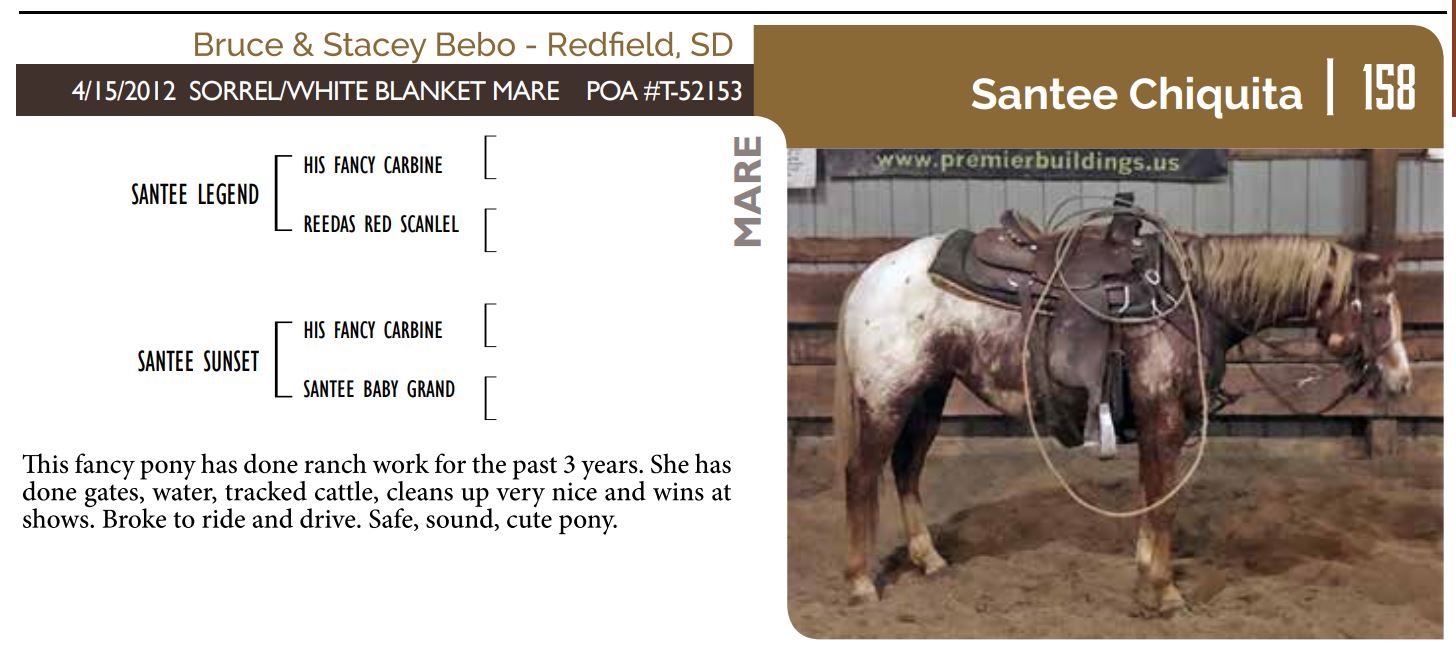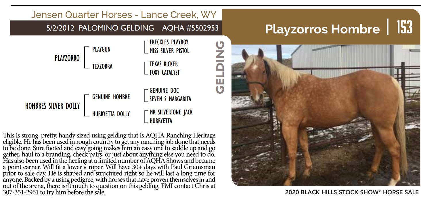The Saturday offering of the Black Hills Stock Show and Rodeo Truck Defender Horse Consignment Sale.