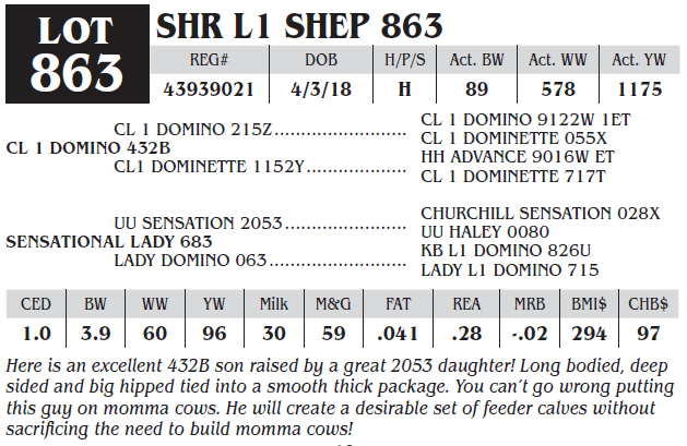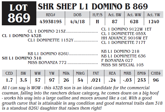 SHR SHEP L1 DOMINO B 869
