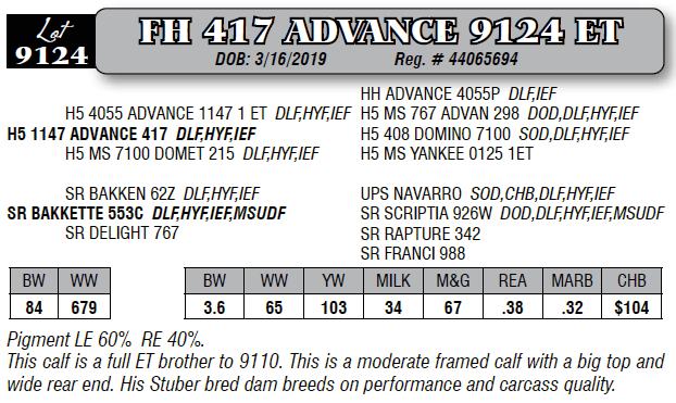 Lot #9124 - FH 417 ADVANCE 9124 ET