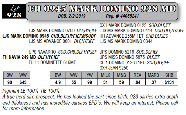 Lot #928 - FH 0945 MARK DOMINO 928 MD