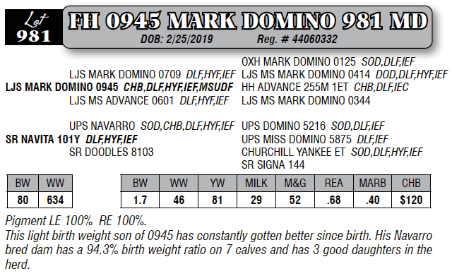 Lot #981 - FH 0945 MARK DOMINO 981 MD