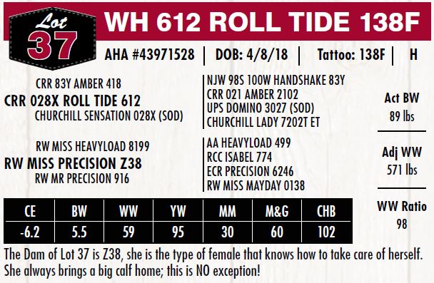 •A.I. Bred Angus to Mill Bar Hickock 7242