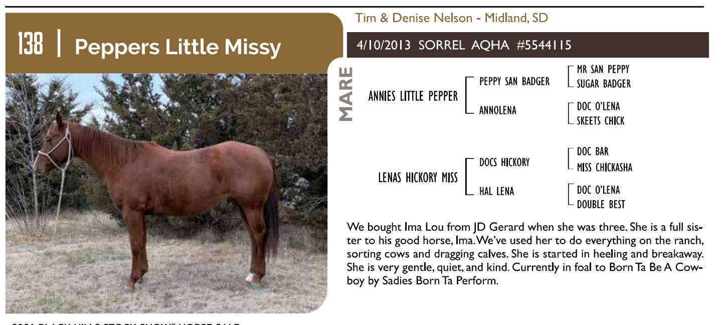 2021 Black Hills Stock Show Truck Defender Horse Sale SATURDAY