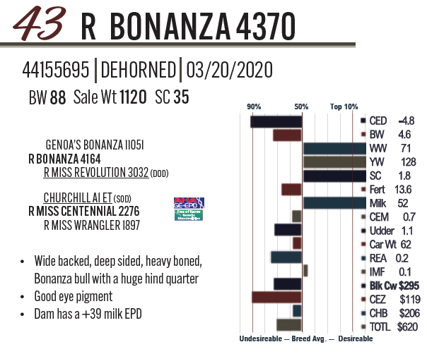 Lot #43 - R BONANZA 4370