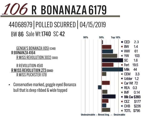 Lot #106 - R BONANZA 6179