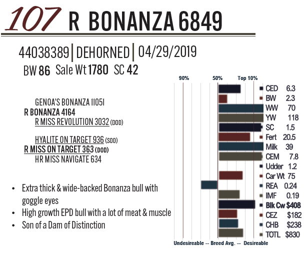 Lot #107 - R BONANZA 6849