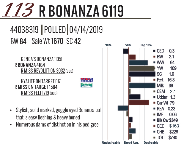 Lot #113 - R BONANZA 6119