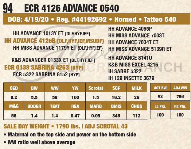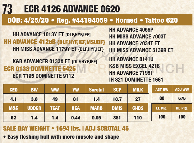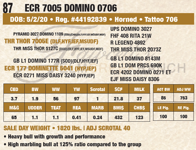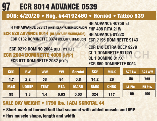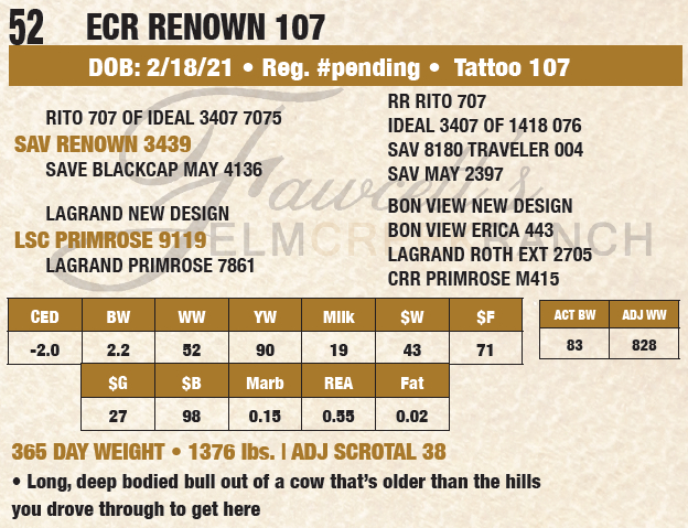 Fawcett's Elm Creek Rach The Rancher's Kind 2022 Bull Sale