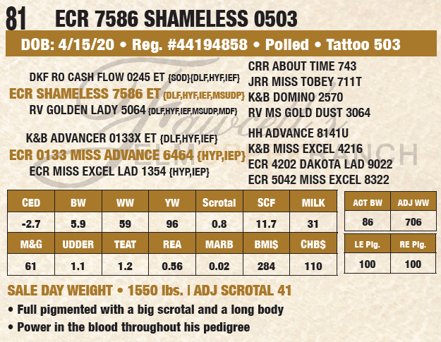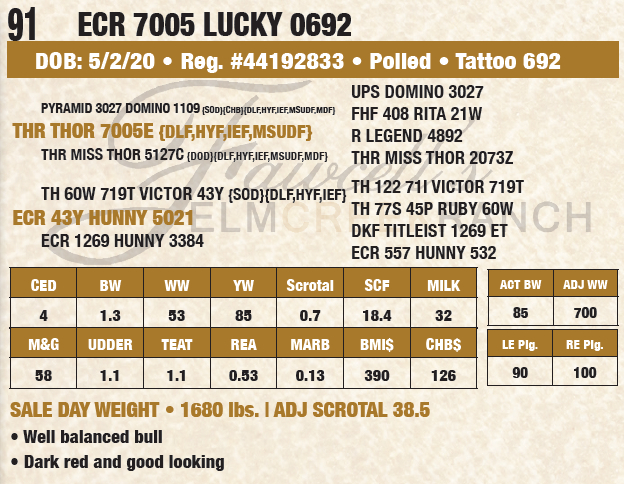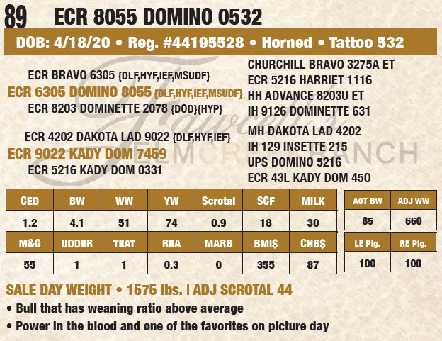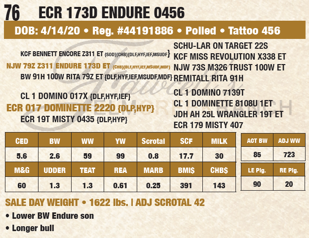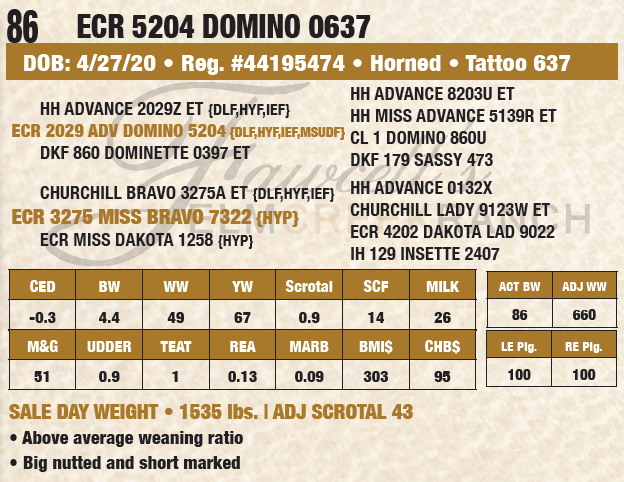 Fawcett's Elm Creek Rach The Rancher's Kind 2022 Bull Sale