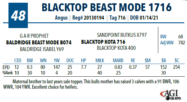 Blacktop Farms 2022 Paving the Way Bull Sale