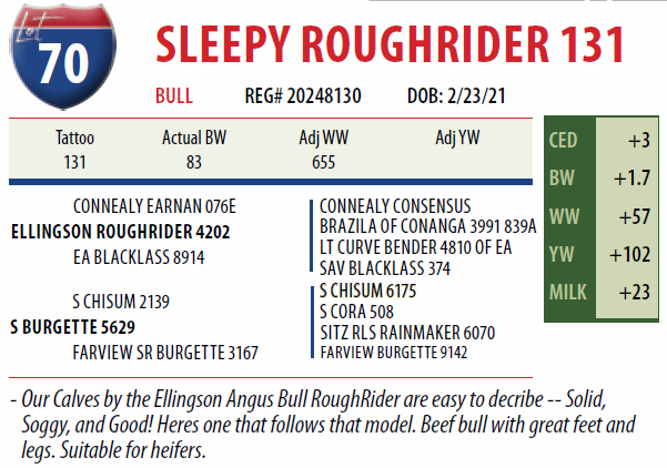 Lot #70 - SLEEPY ROUGHRIDER 131