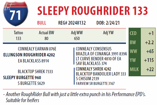 Lot #71 - SLEEPY ROUGHRIDER 133