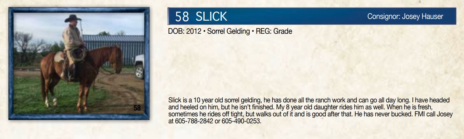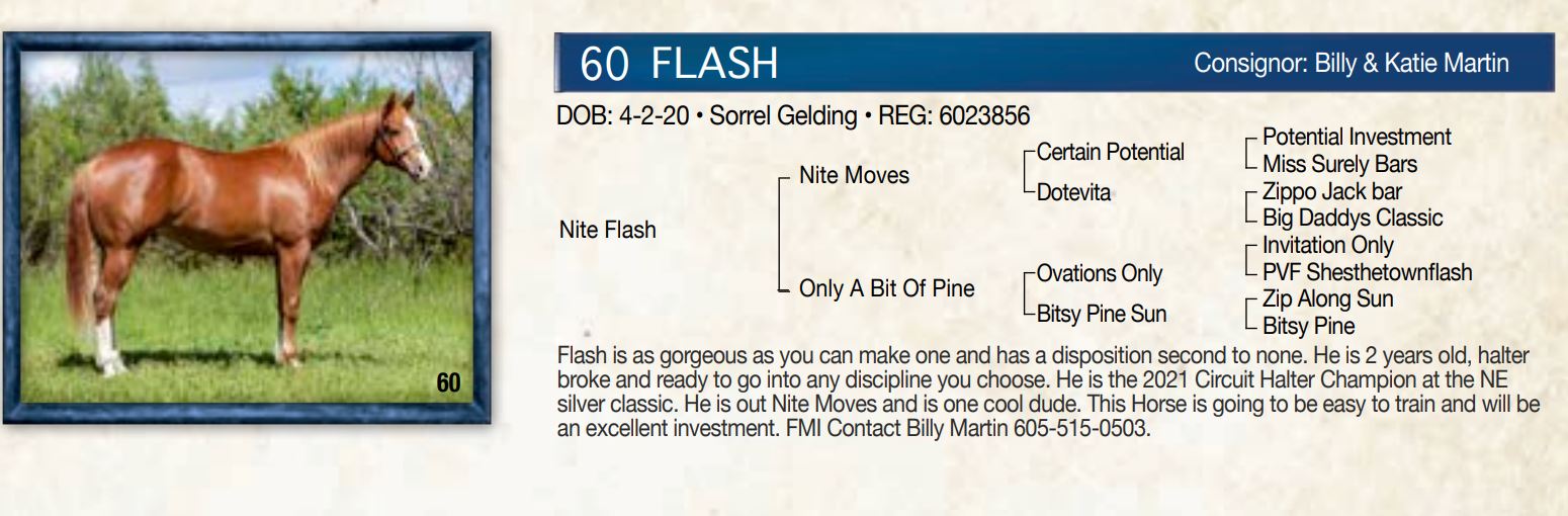 Offering 70 saddle horses and foundation bred colts. From some of South Dakota�s finest horsemen.